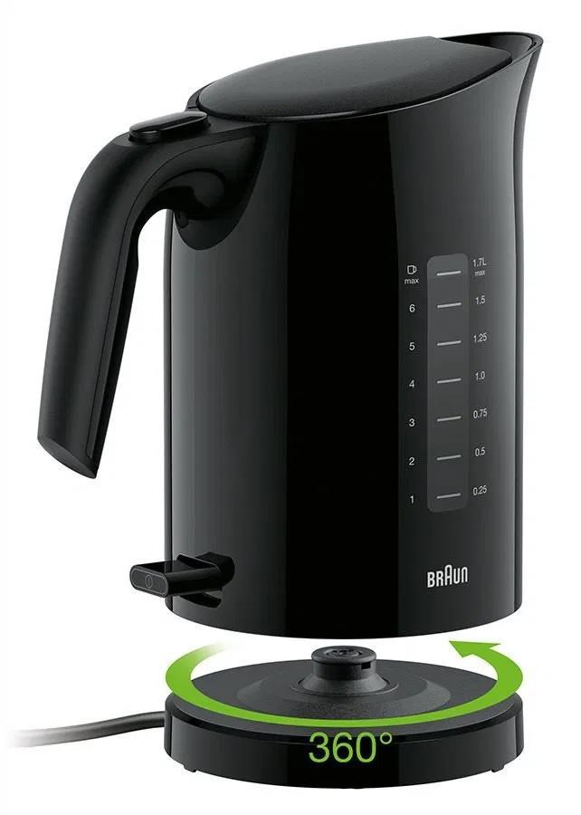 Rýchlovarná kanvica BRAUN je vybavená úložným priestorom na kábel a otočnou základňou. Kanvicu tak môžete položiť v ľubovoľnom uhle. Množstvo vody v kanvici bude vždy jasne viditeľné pomocou ukazovateľa hladiny. Pri zapnutí prístroja sa rozsvieti LED kontrolka, ktorá vás informuje o funkčnosti kanvice. Samozrejmosťou je aj automatické otváranie viečka, ktoré uľahčuje používanie kanvice.