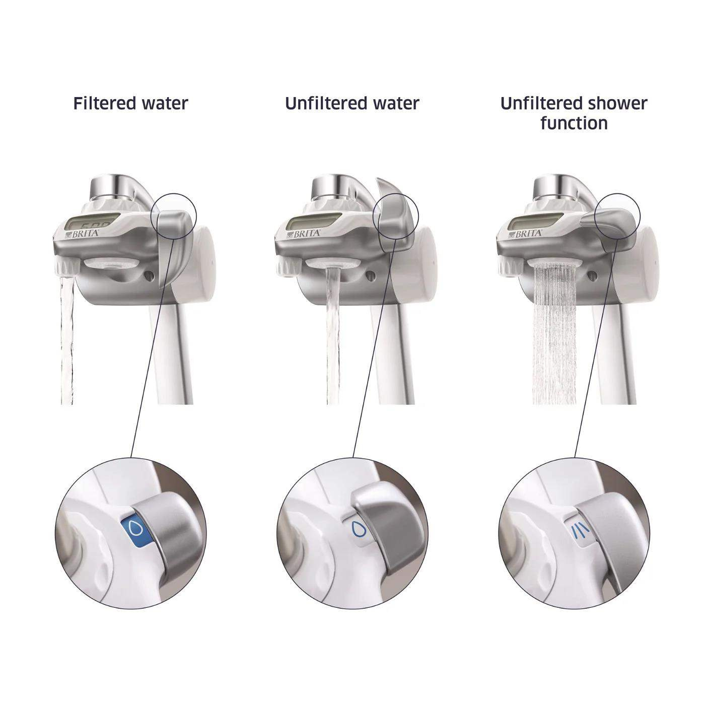 Nefiltrovaná voda protéká přes filtr. Jemné síto zachytí hrubé částice - organické nečistoty. Následně přichází voda do styku se samotnou filtrační směsí, která obsahuje primárně 2 složky. Pryskyřice, která coby iontoměnič absorbuje těžké kovy (olovo, měď). Při kontaktu vody s mikročásticemi aktivního uhlíku dojde k výrazné redukci látek negativně ovlivňujících chuť a vůni vody - především chlóru a pesticidů a herbicidů, které se zachytí na porézním povrchu mikročástic aktivního uhlí. Membrány z dutých vláken zachytí částečky větší než 0,5 µm, jako jsou mikroplasty či 99,9 % bakterií. Z kohoutku pak vytéká voda, která má zachované minerály jako jsou vápník a hořčík. Vodní filtr Brita ON TAP tedy neslouží jako filtr proti vodnímu kameni.