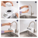 Inovované filtrační patrony BRITA ON TAP dostaly nový tvar, díky němuž je jejich instalace a výměna snadnější. Vylepšeno však bylo především složení filtrační směsi. Filtr je nově tvořen mikročásticemi aktivního uhlíku, které jsou vyrobeny ze skořápek kokosových ořechů, a membránou z dutých vláken, která funguje jako sítko. Zachycuje molekuly, které mají větší velikost než velikost pórů filtrační membrány, tedy 0,5 micron.Účinně redukuje mikro částice jako mikroplasty a bakterie. BRITA ON TAP nabízí možnost přepínat mezi vodou filtrovanou a nefiltrovanou, třeba když myjete nádobí. Jistě oceníte také funkci sprchy. Kapacita filtru je 600 litrů a při běžné spotřebě vydrží zhruba 3 měsíce. Displej vás neustále informuje o množství litrů, takže budete vždy přesně vědět, kdy filtr vyměnit.
