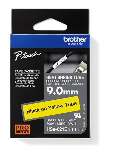 BROTHER smršťovací bužírka - HSE-621E žlutá pro E300VP H300 H500 E550 P700 P750 D800 P900 P950 - 9,0mm / 1,6-5,4 / 3:1