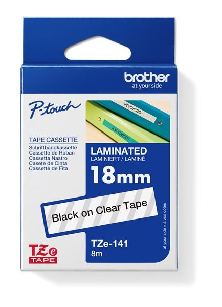 BROTHER TZE141 - kazeta TZ so šírkou 18 mm, laminovaná TZE-141, priesvitné/čierne písmo