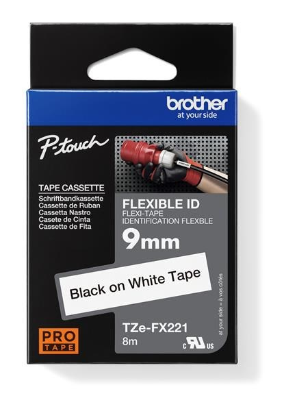 BROTHER TZEFX221 - TZ kazeta 9 mm široká, flexibilná páska TZE-FX221, biele/čierne písmo