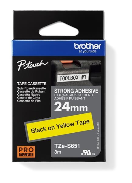 BROTHER TZES651 - kazeta TZ so šírkou 24 mm, extrémne priľnavý laminát TZE-S651, žlté/čierne písmo