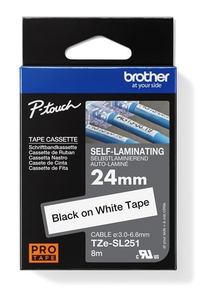 Samolepiaca páska TZe-SL251 s dĺžkou 24 mm s čiernym tlačením na biele bola vyvinutá na dlhodobú identifikáciu sieťových káblov. Má špeciálne lepiace vlastnosti štítkov pre trvácne pevné obtočenie okolo vašich vodičov a káblov. Kompatibilná s niektorými modelmi P-touch, ktoré používajú pásky TZe 24 mm a 36 mm.
