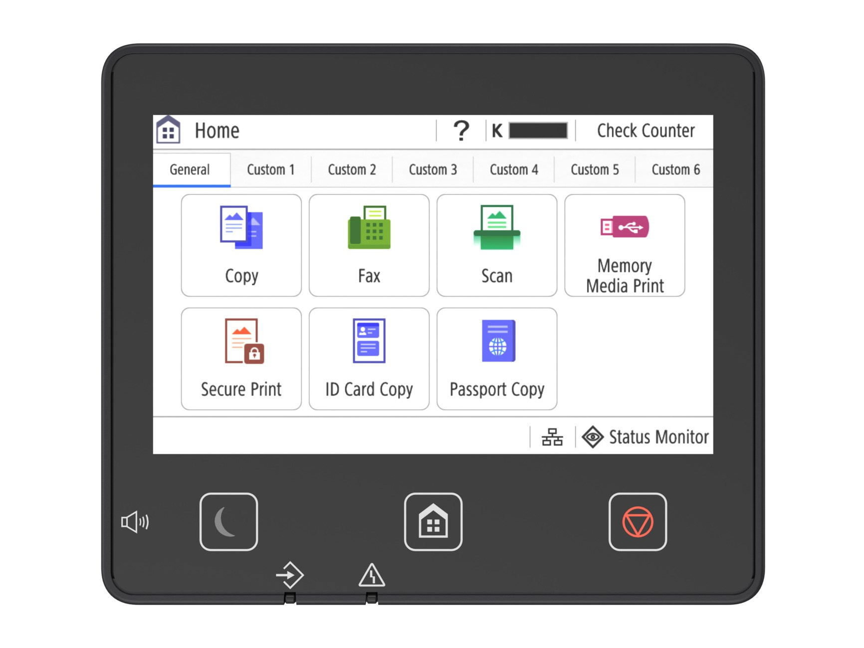 Ďalšie funkcie Vopred nastavené pomery, Obojsmerné, Hustota, Typ originálu, Obojstranný originál, Triedenie, N na 1, Ostrosť, Mazanie rámu, Kópia ID, Kópia pasu, Farebný režim, Rezervná kópia