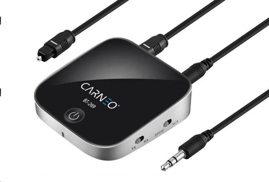 V režime vysielania pripojíte káblové AUX alebo optický S/PDIF audio z televízie či prehrávača a CARNEO BT-269 ich odošle cez Bluetooth až do 2 reproduktorov alebo slúchadiel, takže sa aj v noci môžete naplno ponoriť do atmosféry filmu. Pomocou bezdrôtového pripojenia môžete odstrániť kábly a pripojiť jeden alebo dokonca dva mobilné telefóny k reproduktorom. Teraz môžete synchronizovať tradičné reproduktory so zariadením Smartphone a prenášať hudbu bezdrôtovo. Alebo stereo so Bluetooth slúchadlami, možnosti sú takmer nekonečné.