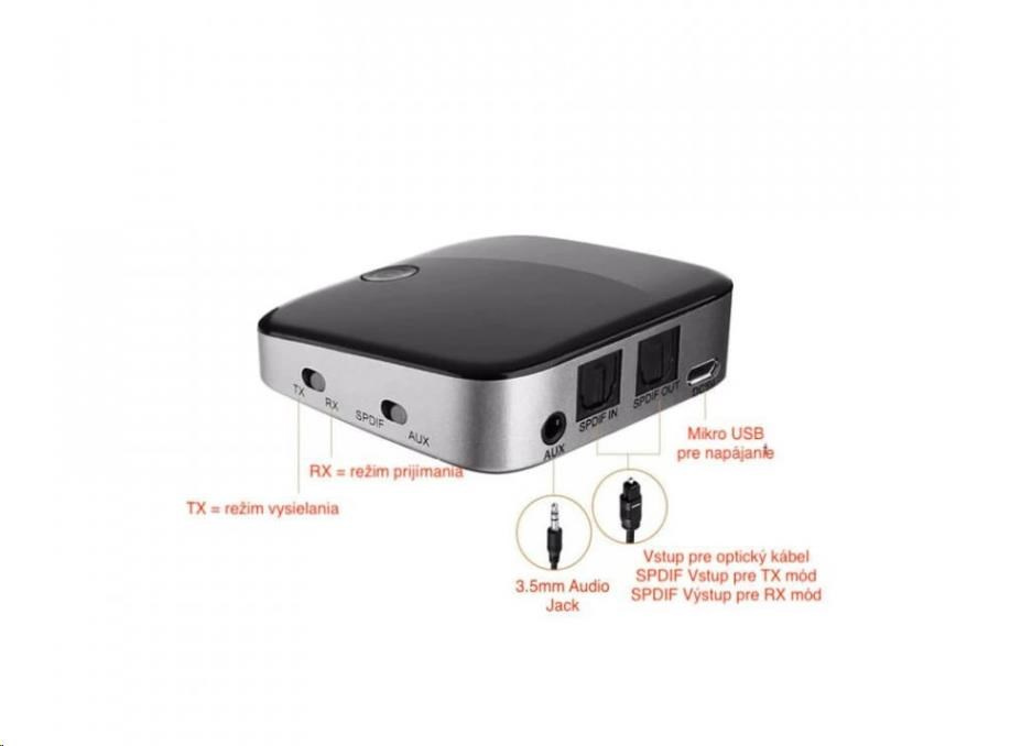 Tento vysielač a prijímač mini Bluetooth je možné pripojiť k širokému spektru zvukových zariadení, ako sú MP3, MP4, TV, rádio, autorádio alebo počítač, a umožní im pripojenie Bluetooth. Použitím optického zariadenia Toslink / SPDIF alebo 3,5 mm audio kábla vytvoríte niekoľko zvukových zariadení s podporou Bluetooth. Bluetooth prijíma aj vysiela, čo znamená viac možností použitia.