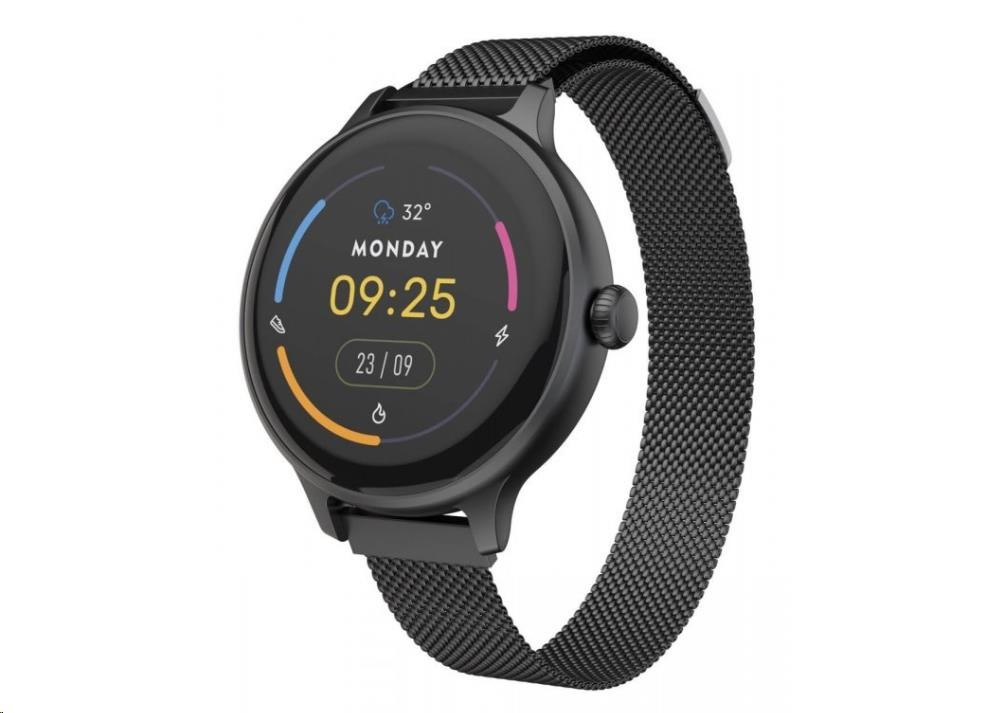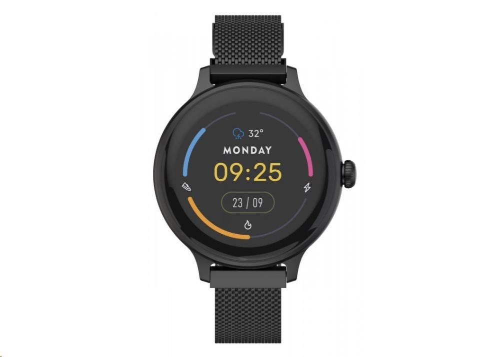 Luxusné fitness hodinky CARNEO HERO mini HR+ s Milánskym, kovovým remienkom s farebným Super HD AMOLED displejom. Monitorujú vašu dennú aktivitu, výšku stresu a je možné ich spárovať s mobilným telefónom, čím vás upozornia na prichádzajúci hovor alebo SMS. Ich dokonalé, minimalistické kovové telo s jednoduchými krivkami je tak návykové, že ich po prvom nosení nebudete chcieť z ruky sundávať. Hodinky vám umožňujú vybaviť telefonický hovor cez zabudovaný mikrofón a reproduktor, ak budete v dosahu spárovaného telefónu (vzdialenosť až 10 metrov).