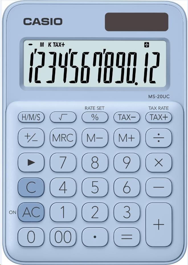 Stolný kalkulačka v módnych trendových farbách Veľký 12-miestny displej Výpočet DPH Výpočet percenta Výpočet odmocniny Tlačidlo +/- Tlačidlo na opravu zadaní Tlačidlo dvojité nuly Výpočty s časom Napájanie: duálne solárne/batériové Rozmery: 23x105x149,5 mm Hmotnosť: 110g