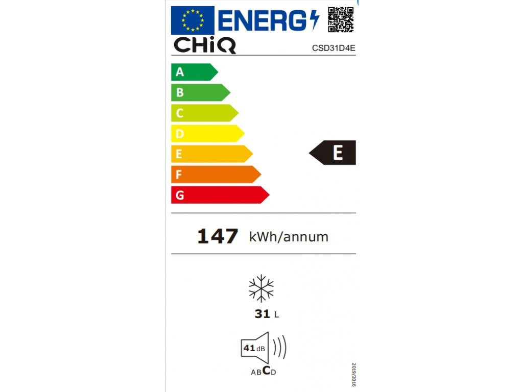 CHiQ CSD31D4E je kompresorový minibar, ktorý je možné manuálne ovládať podľa vašich potrieb. Má energetickú triedu E, čo znamená, že je šetrný k životnému prostrediu a spotrebováva menej elektrickej energie. Je ideálny na skladovanie rôznych potravín, nápojov, ale aj kociek ľadu a mrazených potravín. Má objem 31 litrov a 12-ročnú záruku na kompresor.