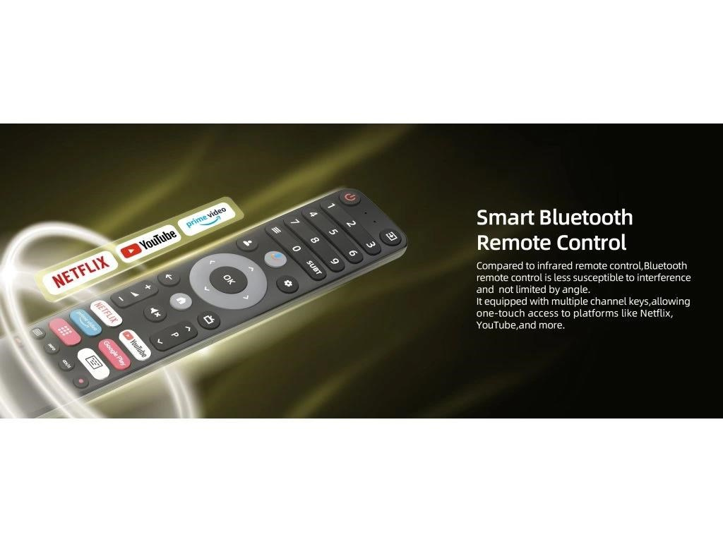 Diaľkové ovládanie je tiež vyrobené z materiálov najvyššej kvality. Zabezpečí rýchlu a príjemnú komunikáciu s televízorom. Vyhradené tlačidlá na Netflix, Youtube, Google Play alebo Prime Video vás rýchlo dostanú k obsahu, ktorý hľadáte.