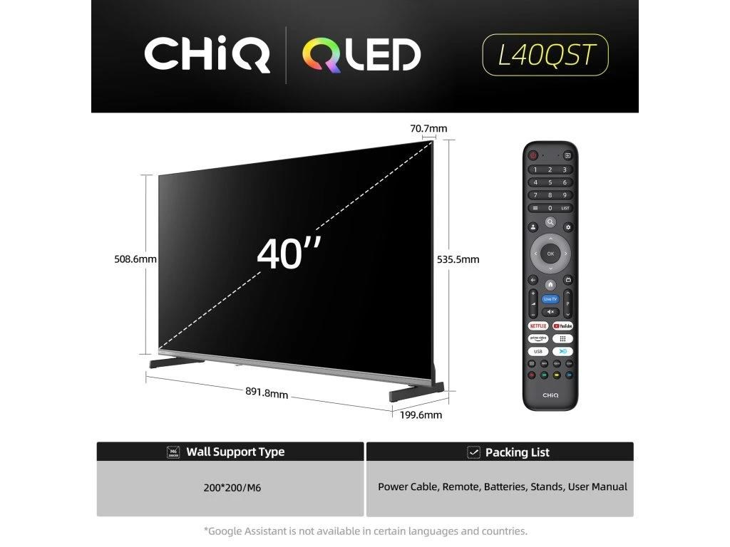 CHiQ L40QST TV 40", QLED, Full HD, Google TV, Frameless, Dolby Audio, dbx-tv, HDR 10