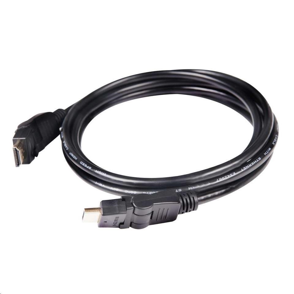 Club 3D HDMI ™ 2.0 4K60Hz UHD 360 ° rotačný kábel môže byť skrútený alebo otočený do prakticky ľubovoľnej polohy. Konektory Rotator majú stredový guľový kĺb, ktorý umožňuje otáčanie a ohýbánie o 360 stupňov. Konštrukcia káblu zaisťuje integritu signálu v ľubovoľnej polohe a jeho flexibilita je ideálna pre inštalácie v tesných / úzkych priestoroch, kde sú štandardné konektory problematicky inštalovateľné.