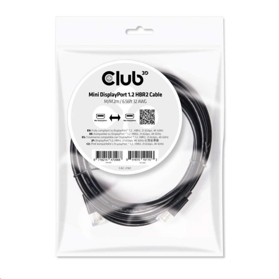 Popis Club3D Mini DisplayPort kábel 1.2 4K60Hz UHD HBR2 (M/M), 2 m