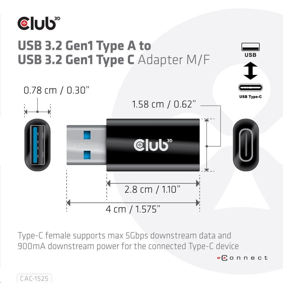CAC-1525 Klub 3D USB 3.2 Gen1 typu A na USB 3.2 Adaptér typu C Gen1, ktorý umožňuje pripojiť hostiteľský počítač s portom USB-A k zariadeniam (ako je napríklad disk USB, mobilný telefón) s portom typu C na prenos dát a napájanie. Okrem toho môžete prostredníctvom tohto produktu pripojiť rozbočovač USB typu C k hostiteľskému počítaču s rozhraním USB-A na následný prenos údajov a napájania.