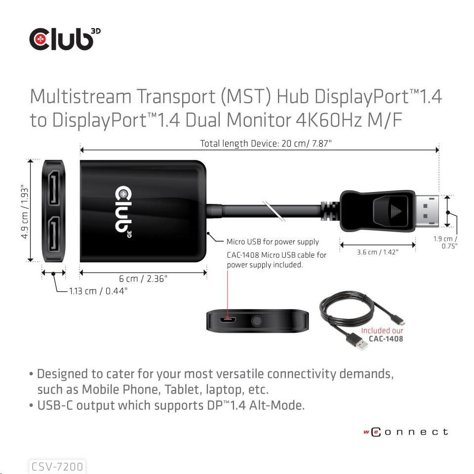 CSV-1555 je USB3.2 Gen2 Type-C (DP™ Alt-Mode) na DisplayPort™Dual Monitor 4K60Hz M/F MST hub. Tento rozbočovač USB-C MST je navrhnutý tak, aby uspokojil vaše najvšestrannejšie požiadavky na pripojenie, ako je mobilný telefón, tablet, notebook atď. s výstupom USB-C, ktorý podporuje režim DP™ Alt-Mode.