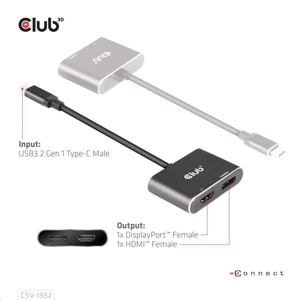 | V krabici | CSV-1552, rozbočovač MST USB3.2 Gen2 Type-C (DP Alt-Mode) na DisplayPort + HDMI 4K60Hz M/F |