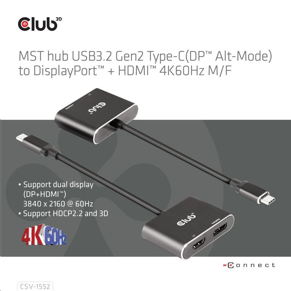 CSV-1552 je rozbočovač MST USB3.2 Gen2 Type-C(DP™1.4 Alt-Mode) na DisplayPort™ + HDMI™ 4K60Hz M/F . Tento rozbočovač USB-C MST je navrhnutý tak, aby uspokojil vaše najvšestrannejšie požiadavky na pripojenie, ako je mobilný telefón, tablet, notebook atď. s výstupom USB-C, ktorý podporuje režim DP™ Alt-Mode.