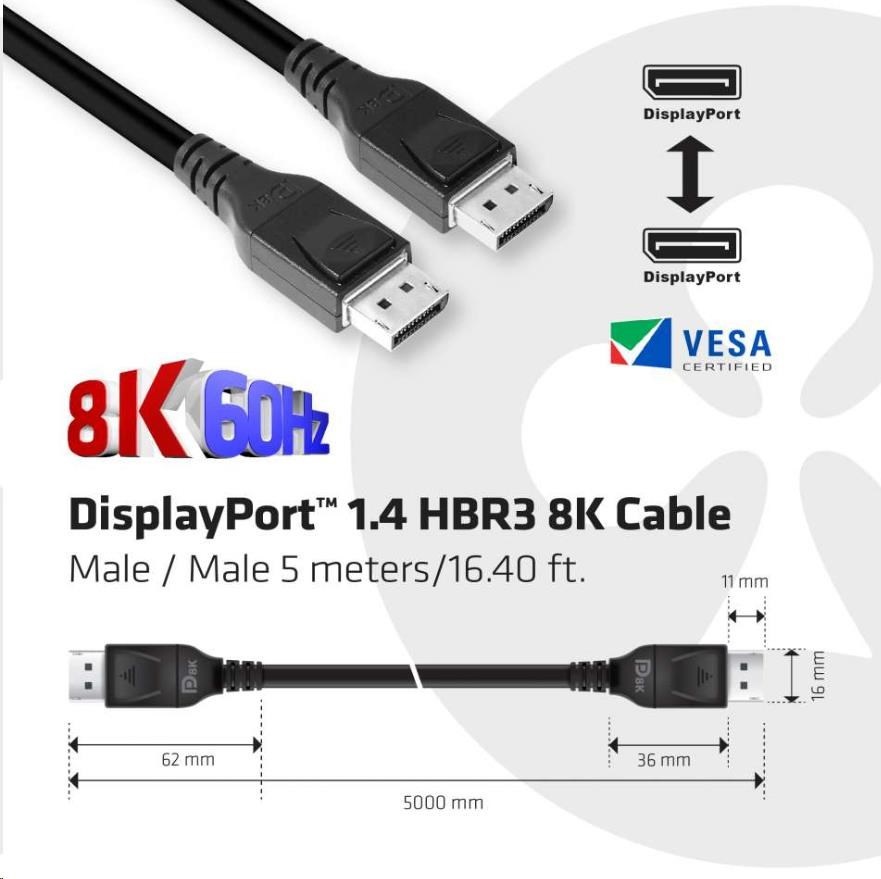 - Club 3D DisplayPort™ 1.4 HBR3 8K kábel.