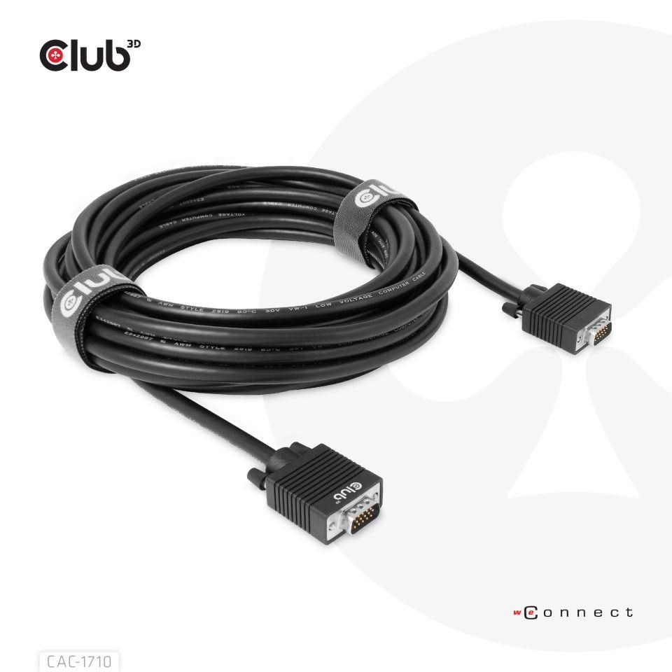 Club 3D CAC-1710 VGA kábel obojsmerný M/M 10m/32.8ft 28AWG spája akýkoľvek stolný počítač, notebook alebo adaptér vybavený VGA s monitorom, displejom, žiaričom alebo projektorom s 15-pinovým portom VGA Female. Kábel je ideálny na použitie doma alebo v práci, vytvára spoľahlivé pripojenie na čokoľvek od hrania hier až po premietanie videa a podporuje rozlíšenie Full HD 1080p (max. rozlíšenie 1920 x 1080).