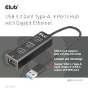 Club3D Rozbočovač, USB-A 3.2 Gen1 na 3x USB 3.1, Gigabit Ethernet