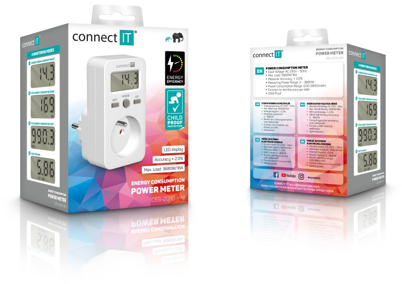 CONNECT IT Digitální měřič PowerMeter, Měřič spotřeby el. energie, bílá