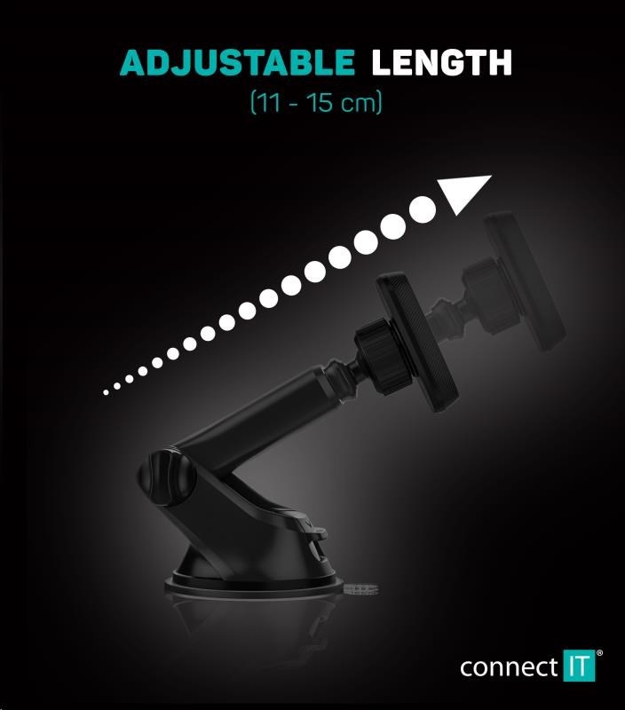 • Nastaviteľná dĺžka ramena od 11 do 15 cm, aby vyhovovala aj veľmi šikmým čelným sklám alebo atypickým prístrojovým doskám