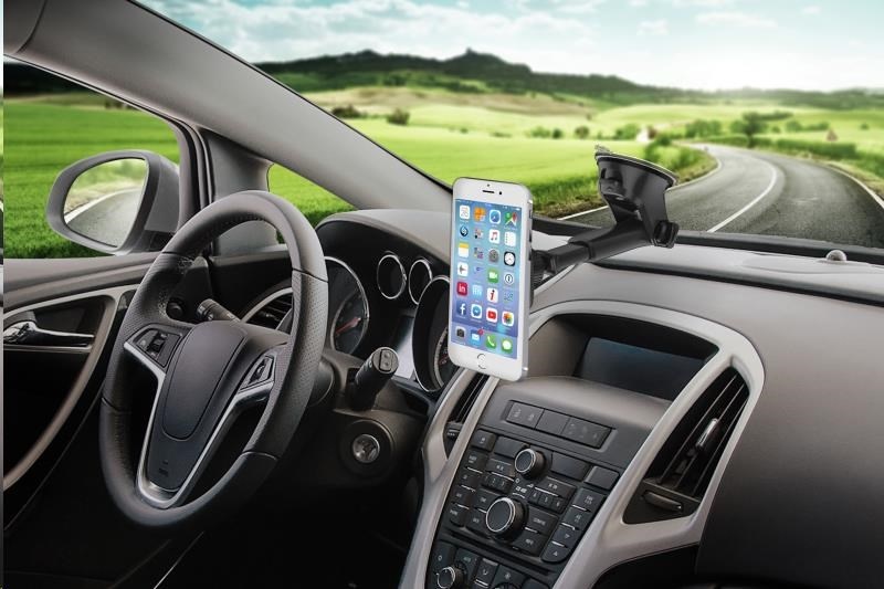 • Pripevňuje sa na palubnú dosku alebo čelné sklo vozidla