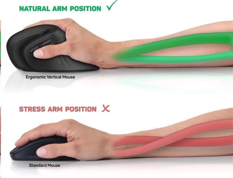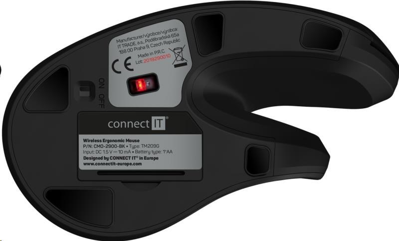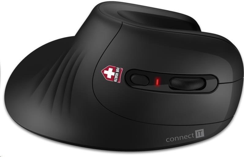 CONNECT IT FOR HEALTH Ergonomická vertikálna myš, (+ 1x batéria AA zdarma), bezdrôtová, ČIERNA