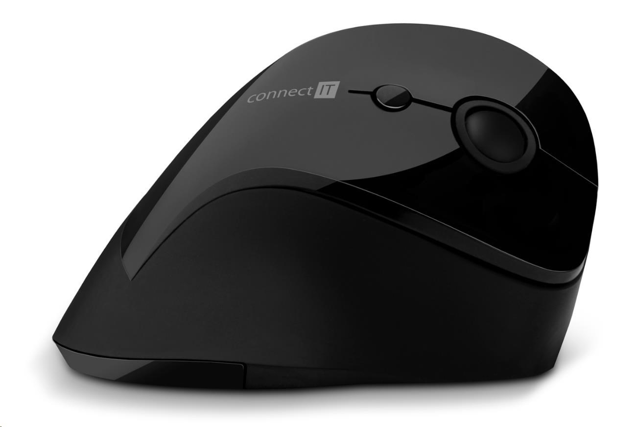 CONNECT IT FOR HEALTH Ergonomická vertikálna myš, (+ 1x batéria AA zdarma), bezdrôtová, ČIERNA