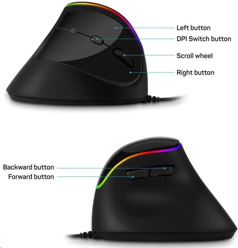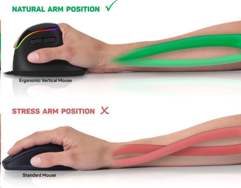 CONNECT IT GAME FOR HEALTH ergonomická vertikálna myš, drôtová, ČIERNA