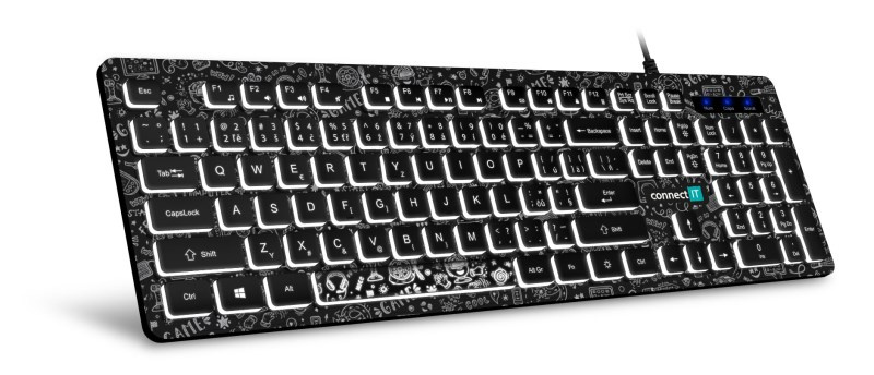 Podsvietená klávesnica s unikátnym DOODLE motívom, určená na domáce použitie aj na vysoko záťažové profesionálne použitie v kanceláriách a firmách.