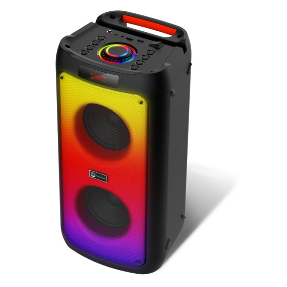 Bezdrôtový reproduktor Hyperbass BEAT+ vás prekvapí nielen svojím zvukom, ale aj kvalitným spracovaním. Celý predný panel disponuje farebným LED podsvietením s možnosťou prepínania niekoľkých svetelných módov. Obsahuje tiež informačný LED displej, možnosť ovládania na diaľkovom ovládači a pripojenia externého mikrofónu (diaľkový ovládač a mikrofón sú súčasťou dodávky).