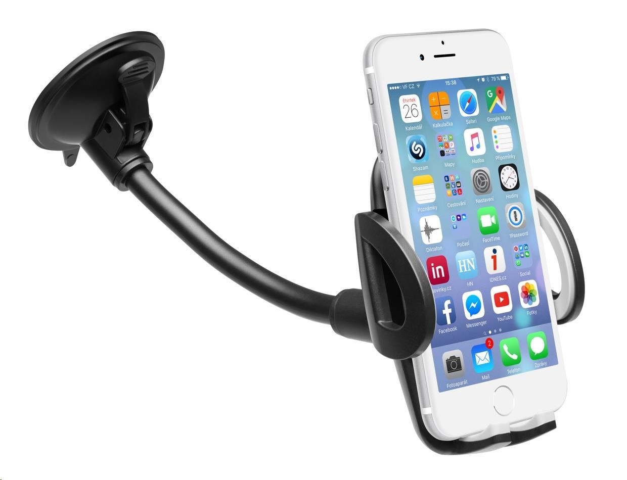 Univerzálny držiak do auta slúži na pripevnenie mobilného telefónu na sklo alebo palubnú dosku auta.