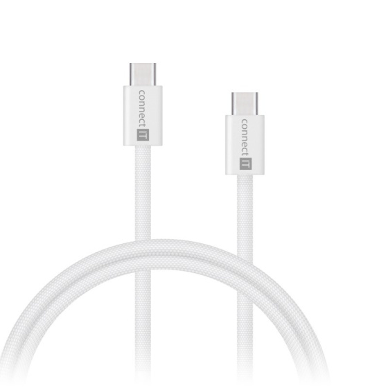 Datový kábel USB-C -> USB-C s dĺžkou 1 m bielej farby je určený na nabíjanie zariadení a umožňuje súčasne tiež prenášať a synchronizovať údaje, fotografie a hudbu všetkých zariadení s USB-C portom. Ide o veľmi kvalitný kábel s dlhodobou životnosťou a jemným dizajnovým opletením.