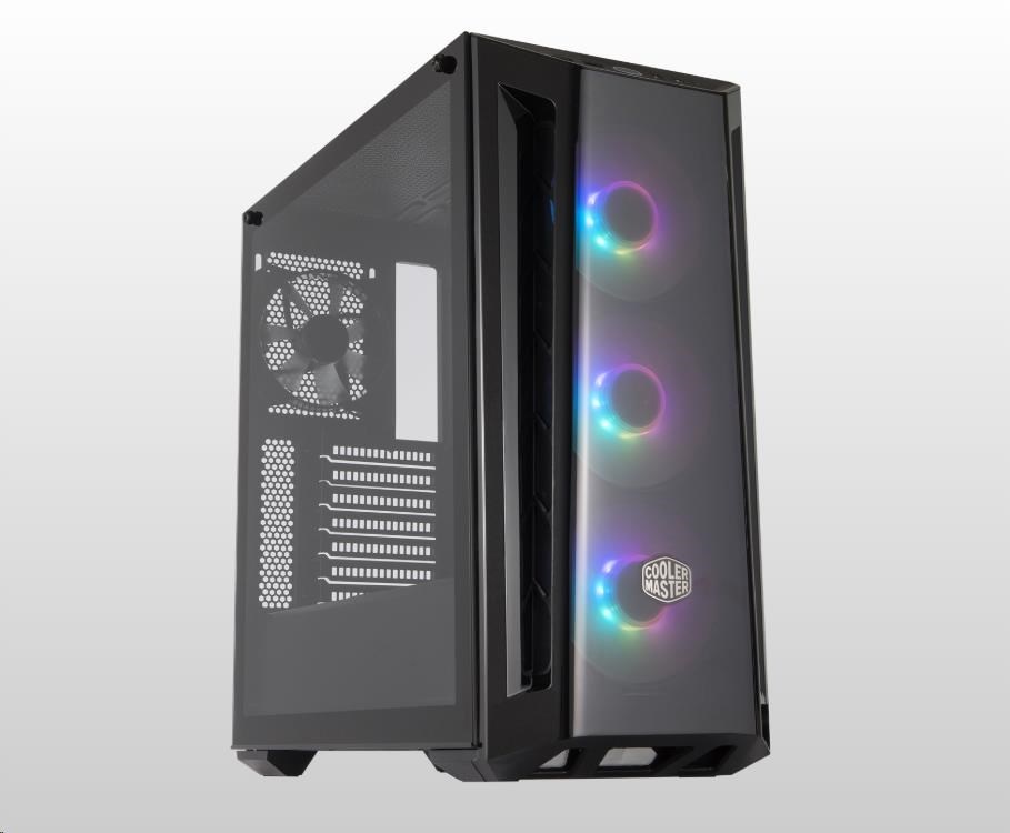 MasterBox MB520 ARGB je optimálna herná počítačová skrinka formátu ATX, v ktorej sa môžete pochváliť osvetlením komponentov a zároveň udržať systémy chladné. Predný panel DarkMirror je o odtieň tmavší, aby dodal predinštalovaným ventilátorom ARGB ostrejší kontrast. Na každej strane predného panelu sa rozprestiera ventilačná sieťka, ktorá zabezpečuje značný prúd vzduchu vo vnútri skrine.