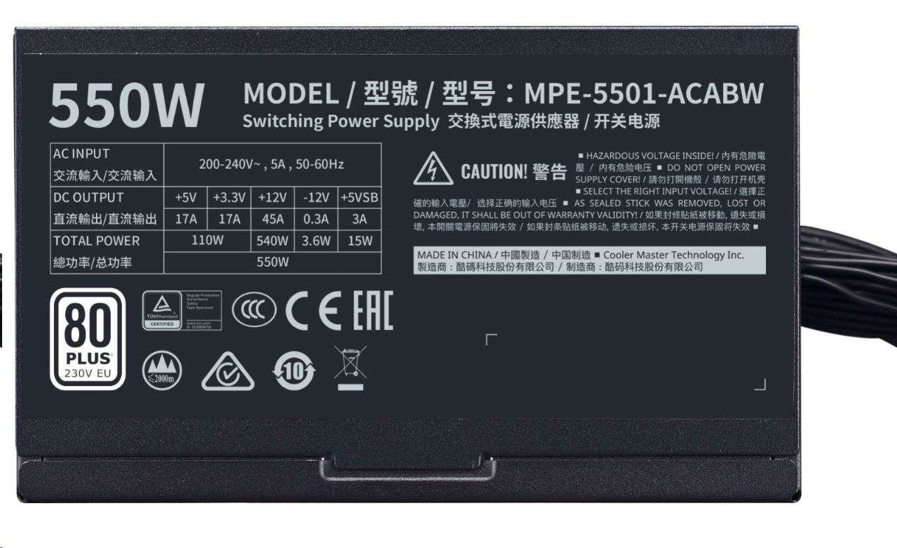 | Výkon zdroja | 550 W |