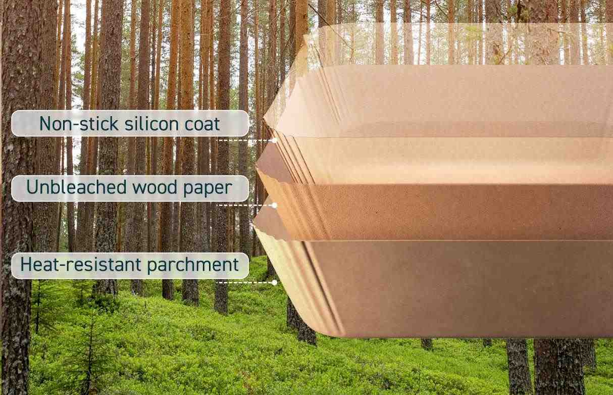 Papiere na pečenie COSORI sú vyrobené z netoxického a nebieleného potravinárskeho materiálu bez vosku a možno ich zahrievať až do 230 °C, čo je najvyššia teplota v teplovzdušnej fritéze.