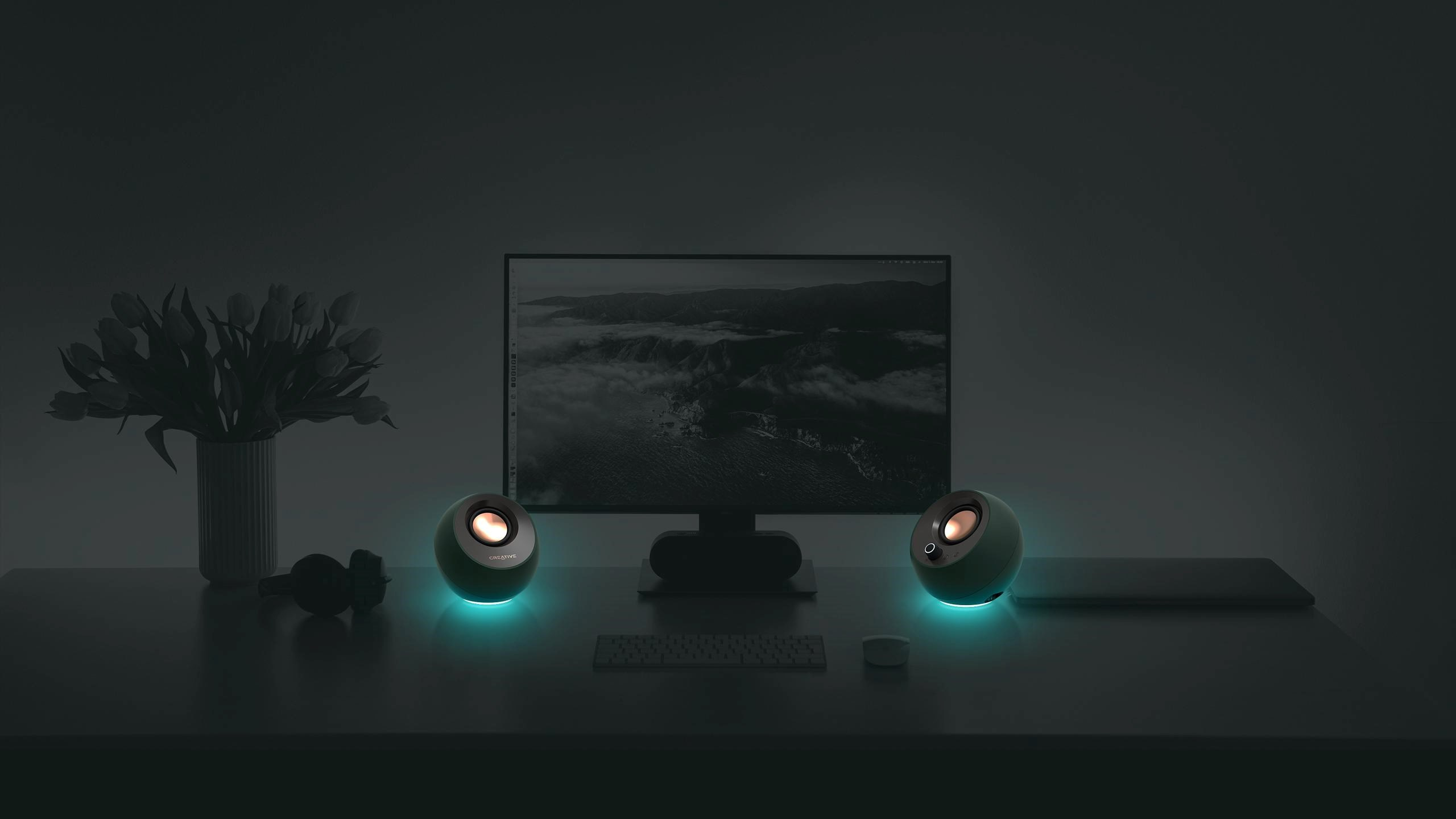 Teraz s nastaviteľným osvetlením RGB! Reproduktory Creative Pebble Pro umožňujú výber zo širokého spektra farieb a troch svetelných efektov pomocou jednoduchého nastavenia typu plug-and-play.