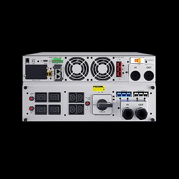 Vďaka vysokému výstupnému účinníku môže UPS s menším pôdorysom poskytnúť viac využiteľného výkonu a ušetriť miesto v racku. Produkt umožňuje paralelné pripojenie viacerých jednotiek UPS a dosiahnutie vyššej kapacity a redundancie napájania. Predinštalovaný Maintenance Bypass PDU (MBP) ponúka rýchlu a bezpečnú údržbu bez prerušenia napájania. Výklopný farebný LCD displej navyše prichádza s intuitívnym a grafickým rozhraním, ktoré používateľom umožňuje ľahko sledovať a konfigurovať nastavenia. Okrem toho je nabíjací prúd batérie nastaviteľný pomocou nastavenia LCD pre skrátenie doby nabíjania. Je tiež navrhnutý s portom pre suchý kontakt relé pre podporu špecifických upozornení na udalosti UPS pre jednoduchú správu.