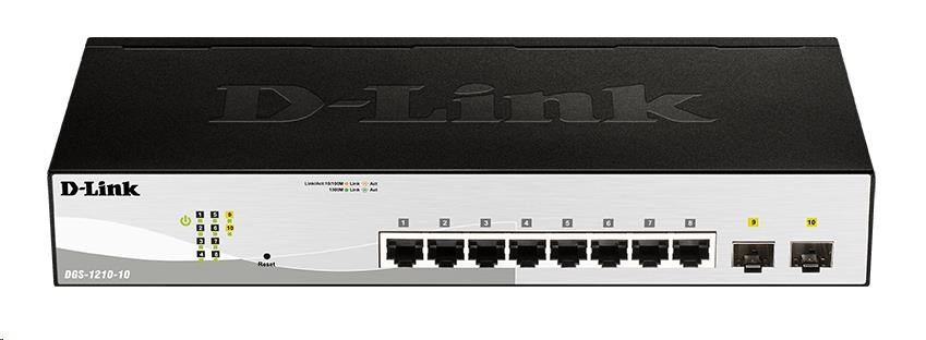 D-Link DGS-1210-10 10portový gigabitový prepínač Smart+, 8x GbE, 2x SFP, bez ventilátora