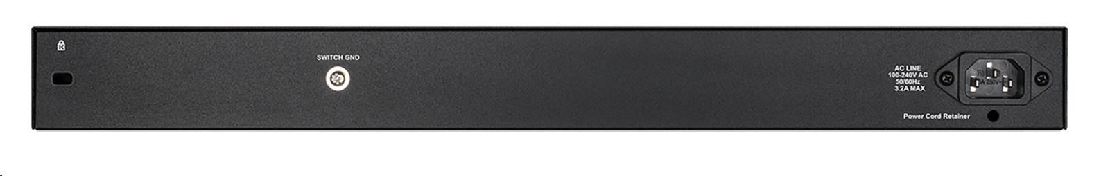24 portov PoE 10/100/1000 Base-T + 4 kombinované porty TP/SFP - 24 x 10/100/1000Mb/s porty s automatickým vyjednávaním - 4x 1Gb/s kombinovaný port TP/SFP - Port 1-24 802.3at do 30W - max. rozpočet PoE 193W - dlink|zelená 3.0, pokročilé funkcie úspory energie - 802.3az Energeticky efektívny ethernetový port (EEE) - úspora energie v režime nečinnosti - Jumbo rámce až do 13000 bajtov, 16K MAC adries - Half-/Full-Duplex, automatické vyjednávanie, Auto MDI/MDIX - IEEE 802.3x Flow Control - 802.3ad Link Aggregation - Asymetrická VLAN, Auto Voice/Surveillance VLAN - Segmentácia prevádzky - 802.1p prioritné fronty - filtrovanie MAC/IP - MAC/IP ACL - 802.1X port-base Access Control, Port Security - D-Link Safeguard Engine - Statické smerovanie a predvolená trasa - IPv6 Ready - D-Link Network Assistant Utility (DNA) od verzie firmvéru. 4.1, webová správa, kompaktné CLI - D-View 6.0, RMON - konštrukcia bez ventilátorov - inštalácia do 19" stojana - firmvér verzie 7 nie je spätne kompatibilný s hardvérovou verziou D1/D2..