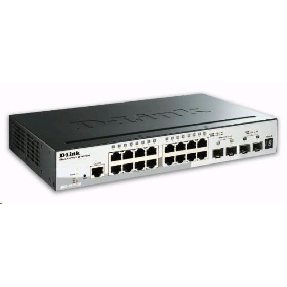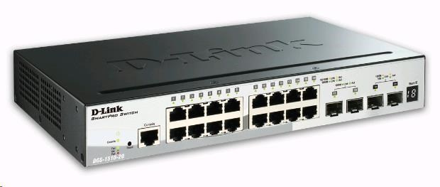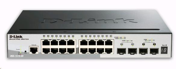 D-Link DGS-1510-20 20-portový gigabitový stohovateľný prepínač SmartPro, 16x gigabitový RJ45, 2x port 10G SFP+, 2x port SFP