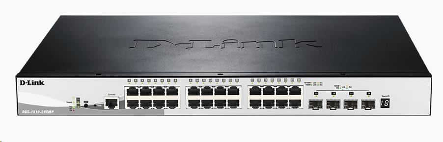 D-Link DGS-1510-28XMP 28-portový gigabitový stohovateľný PoE inteligentný riadený prepínač vrátane 4 10G SFP+, 370W PoE rozpočet