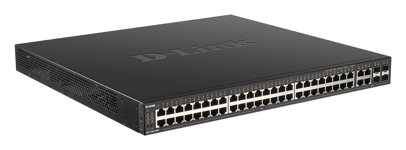 D-Link DGS-2000-52MP je plne riadený 52portový gigabitový riadený PoE switch pre podnikové siete. Prepínač je vybavený 48 portami 10/100/1000M RJ-45 s rozhraním 802.3at PoE+ (max. 30 W na port) a štyri kombinované gigabitové porty Combo RJ-45/SFP s podporou 100M a 1000M vysielačov SFP (Mini-GBIC) na optické prepojenie. Celkový výkon PoE prepínača je 370 W. Aktívne chladenie prepínača zabezpečujú tri inteligentne riadené ventilátory. Súčasťou balenia sú konzoly na montáž do 19" stojanov. Prepínače D-Link radu DGS-2000 ponúkajú komplexnú sadu funkcií L2, bezpečnostných funkcií, funkcií kvality služieb (QoS) a základných funkcií L3 (max. 4 IP rozhrania, statické smerovanie s max. 128 záznamov IPv4/IPv6, predvolená trasa, IPv6 Neighbor Discovery). Riešenie prípadných problémov so sieťou uľahčuje štandard 802.3ah OAM, diagnostika káblov a jednosmerná detekcia prepojenia D-Link (DULD). Poskytovatelia internetových služieb ocenia funkcie Q-in-Q (Port Based), Multicast VLAN (ISM VLAN) alebo IGMP Authentication/Filtering na efektívnu prevádzku služieb IPTV. Prepínač sa spravuje prostredníctvom webového rozhrania, sériovej konzoly CLI, príkazov Telnet, SLL, SSH alebo SNMP. Na počiatočnú konfiguráciu a základnú správu je k dispozícii bezplatný softvérový nástroj D-Link Network Assistant (DNA) a mobilná aplikácia, zatiaľ čo na centrálnu správu väčších sietí je k dispozícii pokročilá platforma D-View 7...