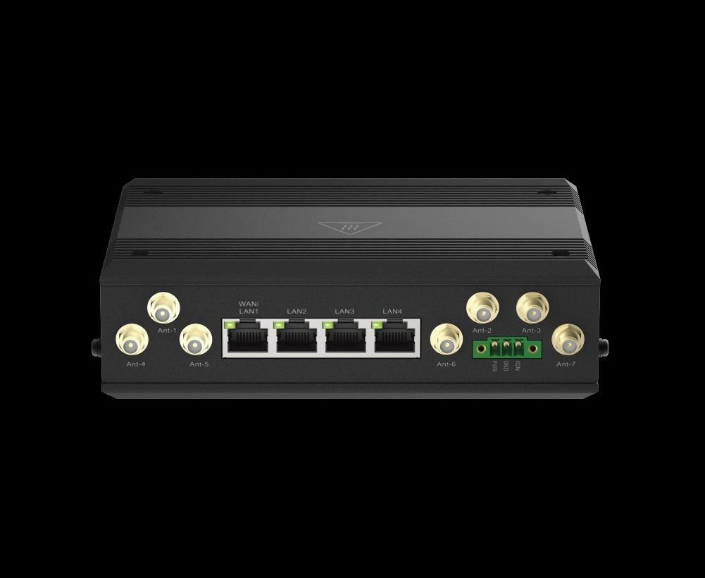 5G SA & NSA with dual SIM slots for cellular WAN failover redundancy 4 x Gigabit Ethernet ports Wi-Fi 6 AX1800 to connect multiple on-board devices 1 x IGN (Ignition Sense) for power control function GNSS for GPS/GLONASS -30 to 70°C operating temperature to resist harsh environments Wide voltage range input: DC 12-36V Mounting bracket allows for optimal device placement.