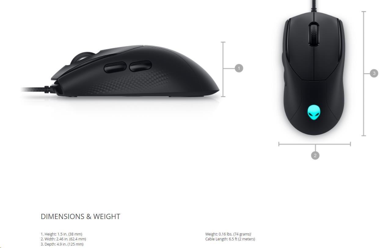 Popis DELL Alienware Wired Gaming Mouse AW320M