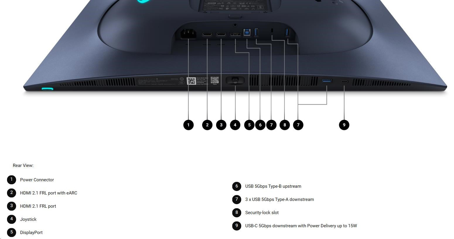 • 2 HDMI porty (HDCP 1.4 & 2.3) (Podpora až 3840 x 2160, 240 Hz, FRL, HDR, VRR podľa špecifikácie v HDMI 2.1) (vrátane jedného HDMI 2.1 FRL s eARC/ARC - na podporu Dolby ATMOS signálového passthrough)