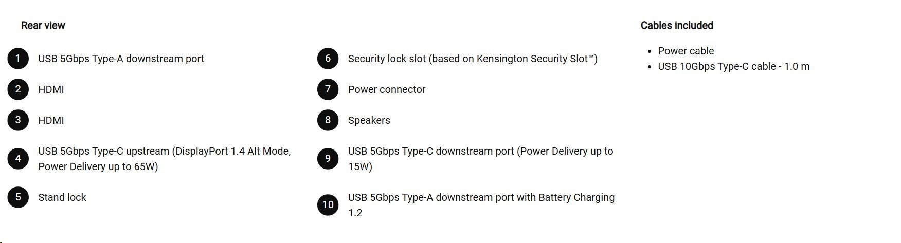 | 1. | Video port - 1 USB-C 5Gbps upstream port (DisplayPort 1.4 Alt Mode, Power Delivery až do 65 W)