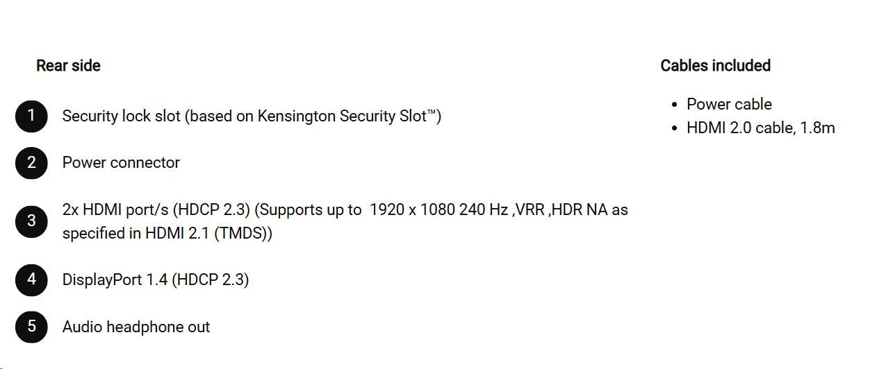 Popis DELL LCD SE2426HG - 24"/FHD/IPS/1920x1080/16:9/240Hz/5ms/1000:1/300 cd/m2/HDMI/DP/VESA//3YNBD (210-BTTF)